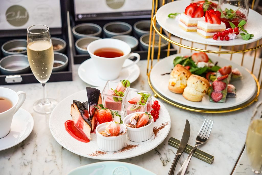 かわいらしい苺づくしのアフタヌーンティーでは、「苺のショートケーキ」や「苺とチョコレートのムース」、「苺のバスクチーズケーキ」などのスイーツに加え、「苺とアボカドの生春巻き」や「苺とリコッタチーズのルッコラサラダ」などのセイボリーも揃えた、全8種のメニューをご用意しました。